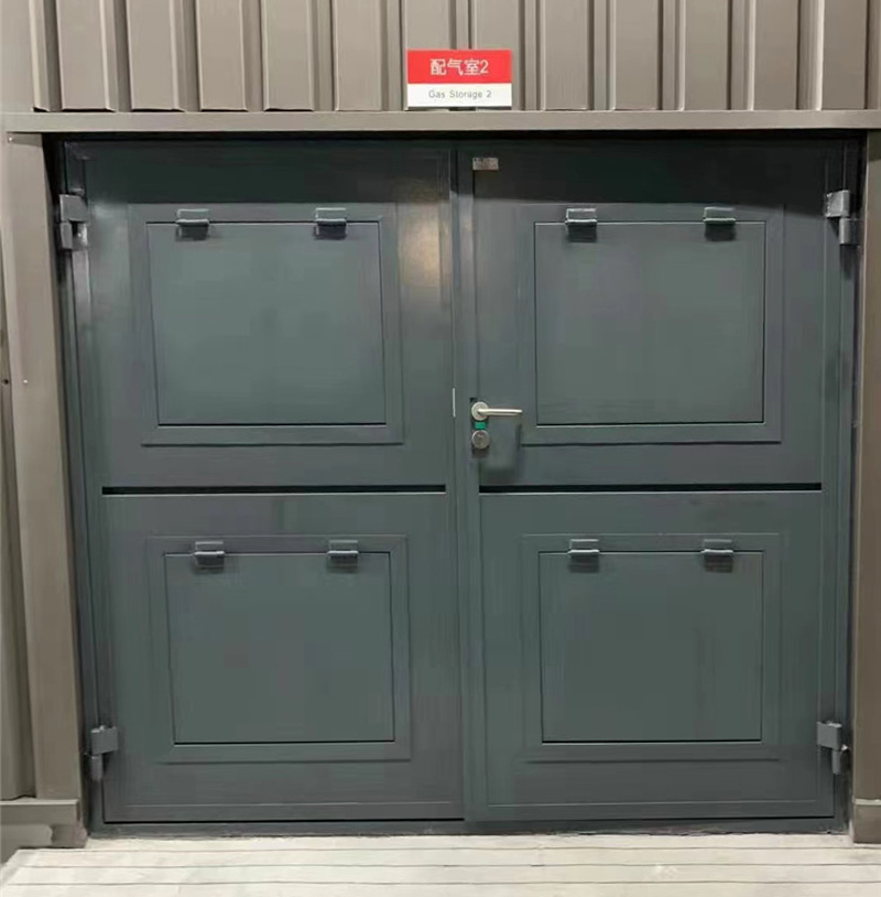 泄爆門采用鋼質(zhì)門框骨架以及鋁合金門扇,門扇內(nèi)部填充巖棉保溫材料,并配以特種鉸鏈、逃生鎖、泄爆裝置、閉門器等五金配件。